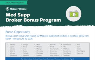 March 1–June 30, 2026, the broker bonus payout on underwritten Medicare Supplement applications has increased to $250 per application in participating states.